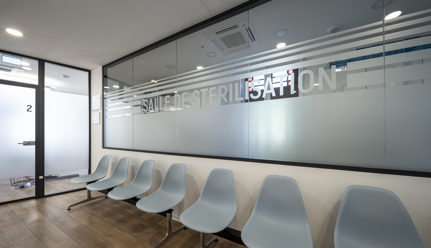 Parce qu’un cabinet médical est aussi un lieu d’accueil, plusieurs éléments ont été conçus et réalisés sur mesure par nos menuisiers, à l’image du desk d’accueil, pensé comme un repère à la fois fonctionnel et élégant.