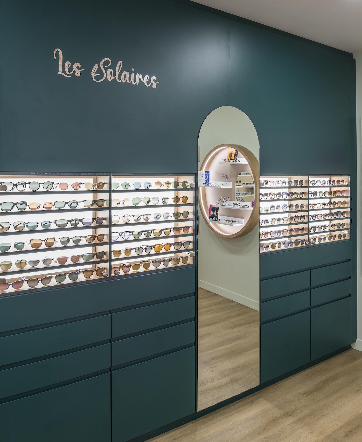 Créatio a accordé une importance particulière à la cohérence entre conception et réalisation. Ici, les ateliers dédiés aux montures et aux verres sur mesure, véritables cœurs battants de la boutique, étaient jusqu’alors peu visibles. Notre mission a été de les révéler. Aux côtés du STUDIO CAMARASA, nous avons travaillé main dans la main avec la cliente pour imaginer un lieu qui lui ressemble, un espace où l’ambiance, les matériaux et la mise en scène expriment naturellement son univers professionnel. L’architecture intérieure a été pensée pour rendre lisible l’expertise artisanale, tout en offrant une expérience chaleureuse et haut de gamme aux visiteurs.