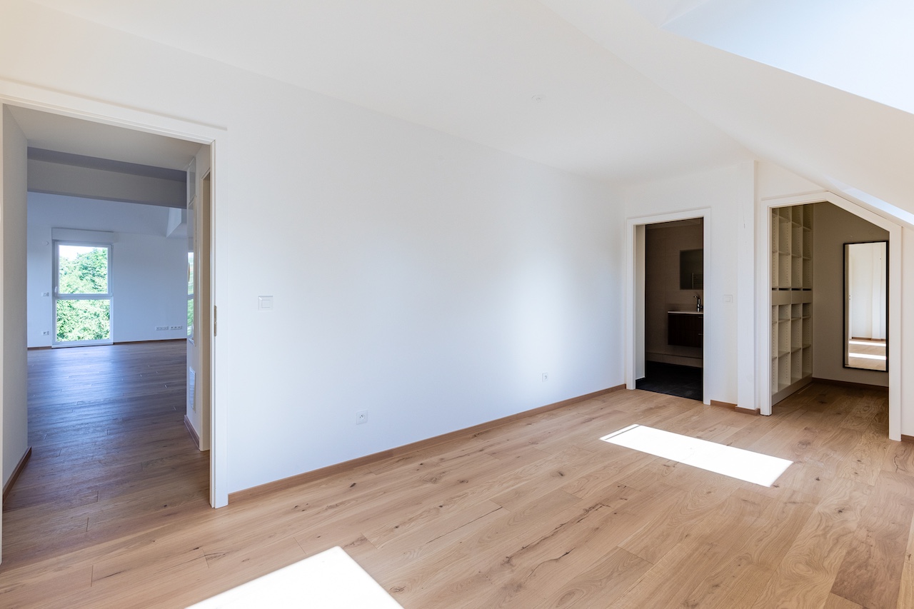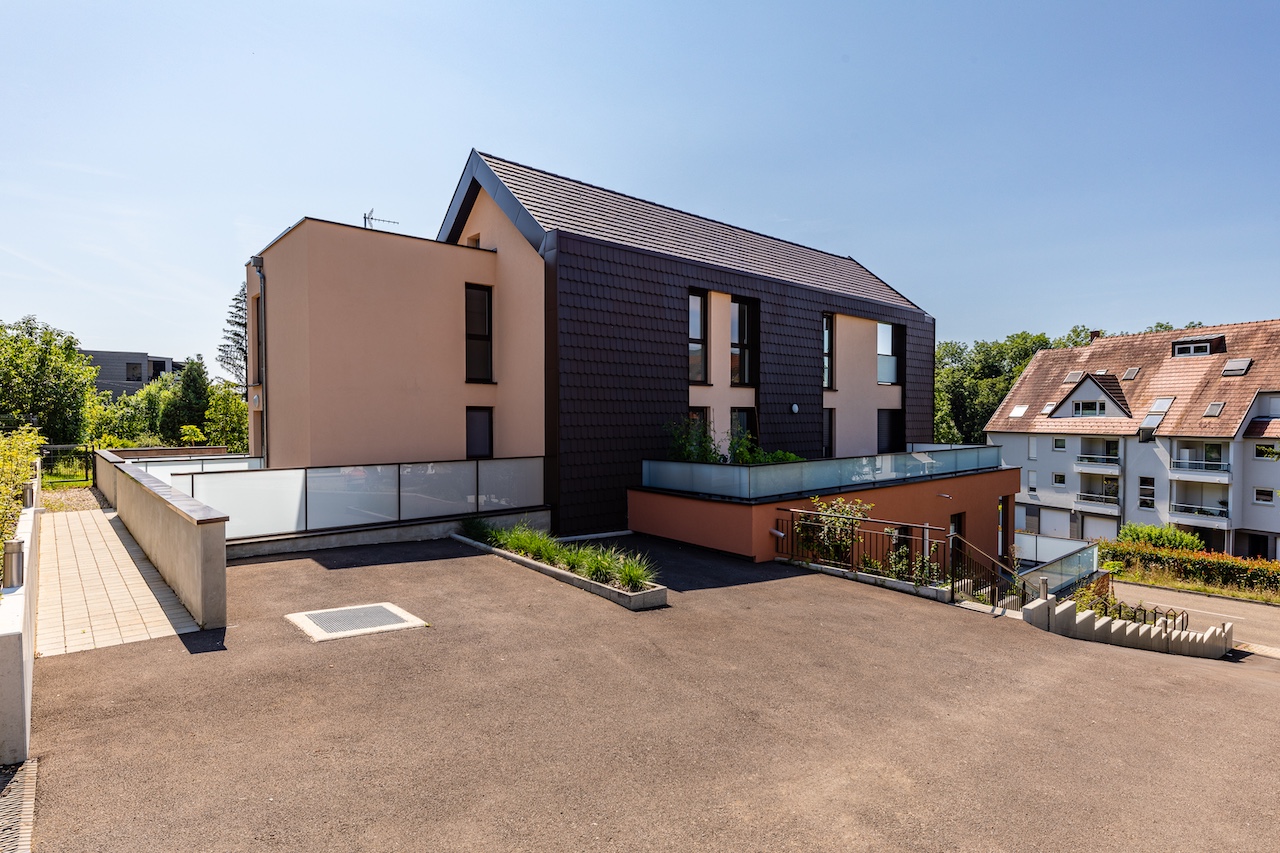 Implantée dans un environnement calme et verdoyant, ce programme immobilier neuf propose 5 appartements de standing, du T4 au T5, avec une approche qui conjugue modernité tout en respectant l’identité du secteur : grès, tuile et larges pans de toitures. La conception architecturale privilégie une intégration élégante notamment grâce à une façade en zinc qui apporte une signature contemporaine, tout en restant sobre et parfaitement cohérente avec le cadre d’Obernai.